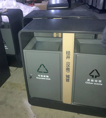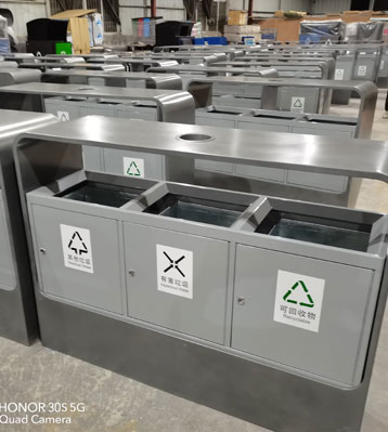 欣方圳戶外鋼制分類垃圾箱工廠批量生產(chǎn)圖
