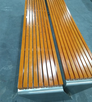 欣方圳不銹鋼特色雙排戶外休閑椅凳面防腐木材質制作流程示意圖,工藝領先,品質卓越,真正經久耐用。