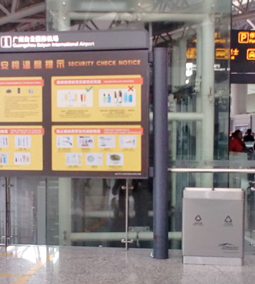 廣州白云機場候機樓直投口不銹鋼垃圾箱旅客投放便利
