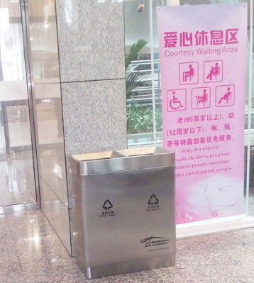• 使用范圍:欣方圳機場分類垃圾箱表面光滑、亮麗,應用于電梯口、寫字樓、學校、物業、賓館、酒店、機場、汽車站等室內果皮垃圾收集使用。